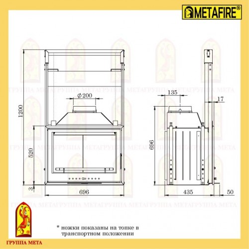 Топки торговой марки  METAFIRE изготовлены из высококачественной стали и предназначены для устройства камина. Топочная камера футерована шамотными огнеупорными плитами. Все топки укомплектованы специальными термостойкими стёклами производства Японии.