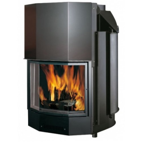 Топка с водяным отоплением из толстой стали, способная производить горячую воду, поступающую в контур системы отопления и на радиаторы, а также производить горячую техническую воду. Дверца с подъемом, эркер. Камин может устанавливаться как пристенный или как фронтальный. В наличии версия для инсталяции с закрытым расширительным баком, спиралью и встроенным клапаном безопасности.