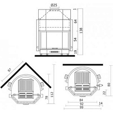 Дровяная каминная топка с металлической структурой и очагом из огнеупорной керамики. Топка с высоким КПД и низкими показателями выброса продуктов горения в атмосферу, характерен сниженный расход топлива и всегда чистое стекло. Модель с подъемным механизмом, призматическое стекло.