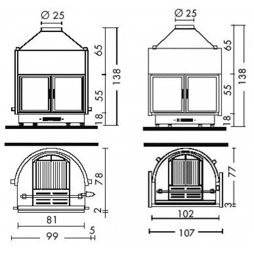 Корпус  топки EdilKamin Idro 100 из утолщенной стали, чугунный очаг, витрокерамическое стекло, резистентное к термическому шоку до 800°, бак для воды на 100 литров.