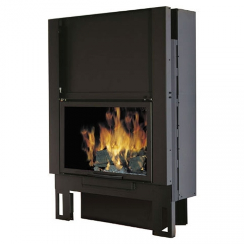 Закрытая топка со стальным корпусом и широким обзором огня. Очаг прямоугольной формы с чугунной футеровкой. Плавный подъем дверцы - гильотина. Топка может устанавливаться как с пристенной облицовкой, так и в угловой версии камина.