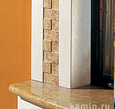 Каминная рамка в современном стиле из мрамора Травертин разного тона.