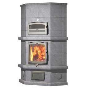 Верхнее подключение дымохода. Угловая печь-камин с духовкой. 3 тепловой класс.