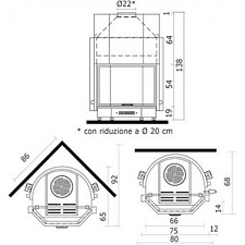 Сквозная чугунная топка, которую можно установить посреди помещения. Требует специальной каминной облицовки. В зависимости от утепления дома, способен согреть 200-250 кв.м. Толщина стекок 7 мм. Ребра увеличивают поверхность теплоотдачи.