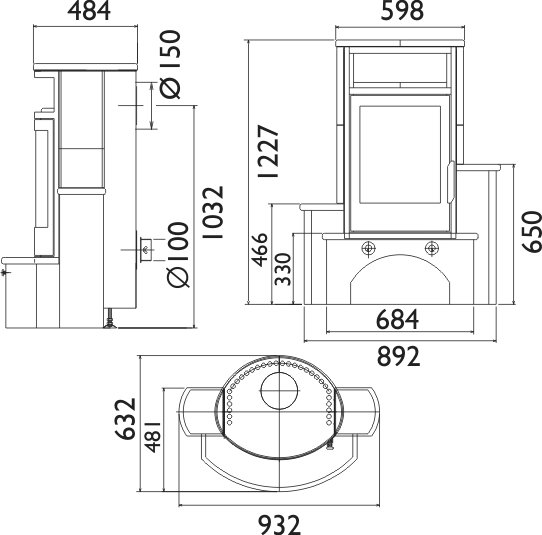 - Диаметр дымохода, (мм) 150